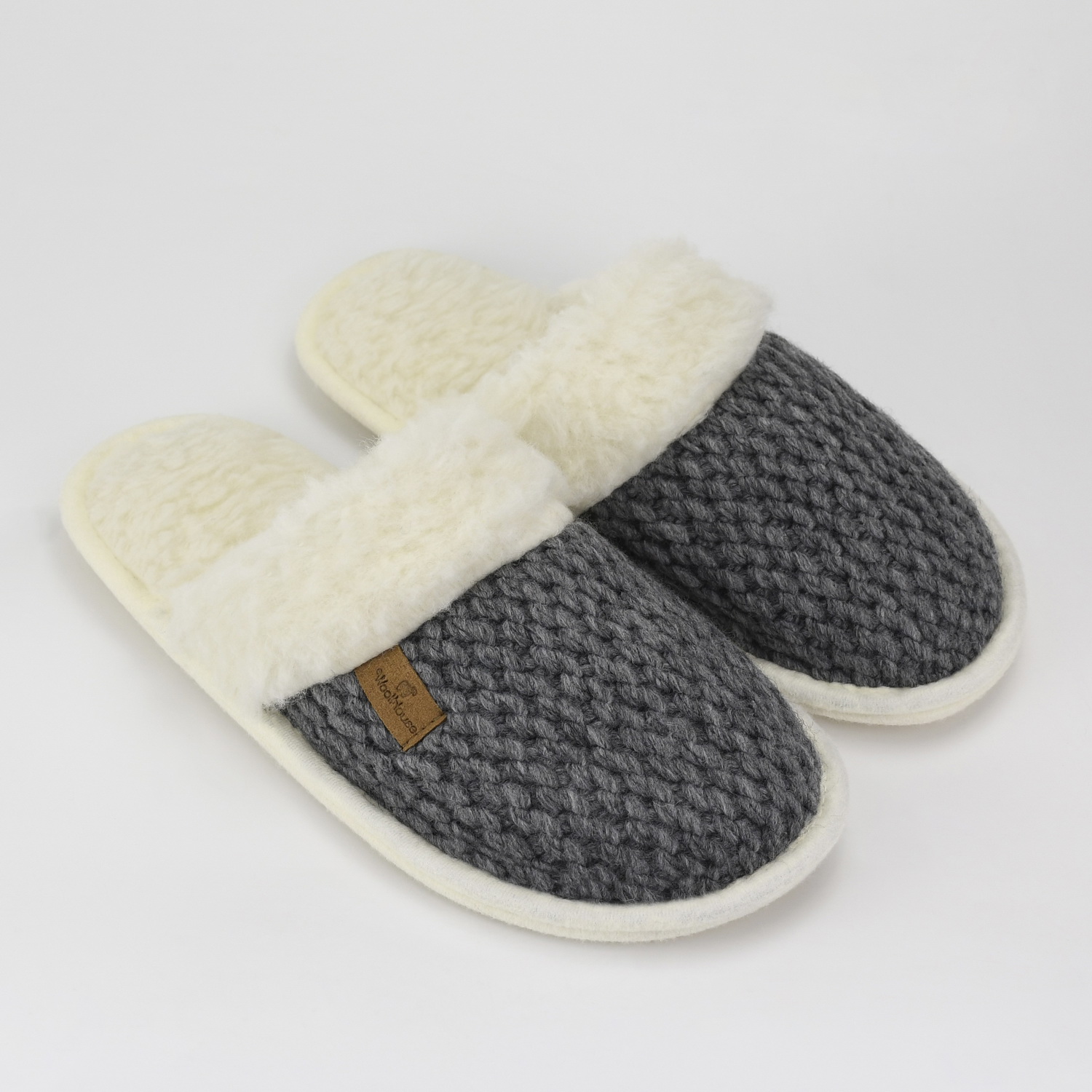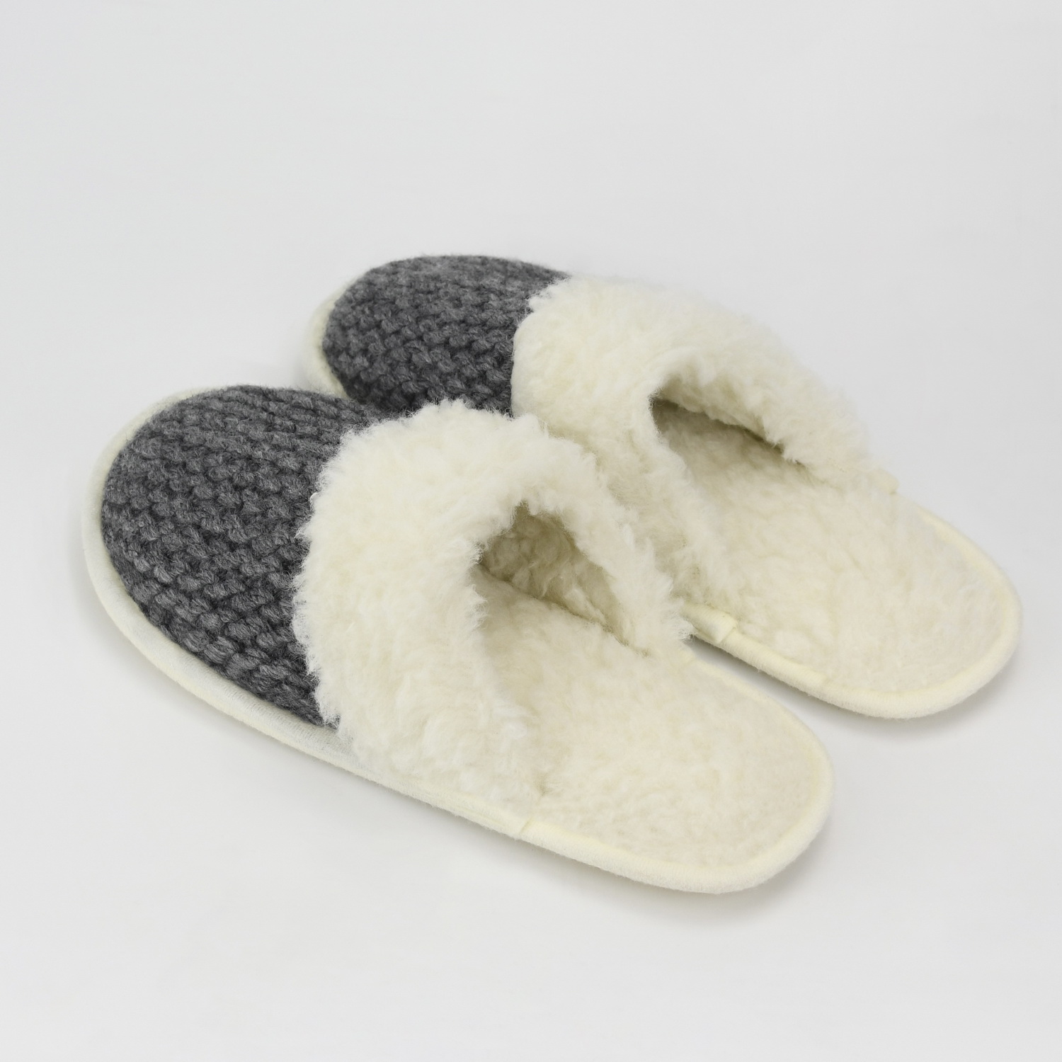 Тапочки Эрия с двухслойным верхом из шерстяного вязаного полотна. Внутренняя часть верха и стелька изготовлены из итальянского трикотажного полотна, в которое прикреплён живой волос овцы.