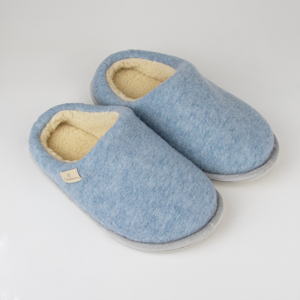 Тапочки с двухслойным верхом из вареной шерсти. Внутренняя часть верха и стелька изготовлены из итальянского трикотажного полотна, в которое прикреплён живой волос овцы. Прочная, износостойкая и антискользящая ЭВА-подошва. Шерсть наделена многими полезными свойствами. Благодаря высокой концентрации в овечьей шерсти ланолина, ношение изделий из нее облегчает боль в суставах и мышцах, стимулирует кровообращение, улучшает микроциркуляцию, сохраняет тепло и отводит влагу, позволяя ногам оставаться всегда теплыми и сухими. Преимущества изделий из шерсти: