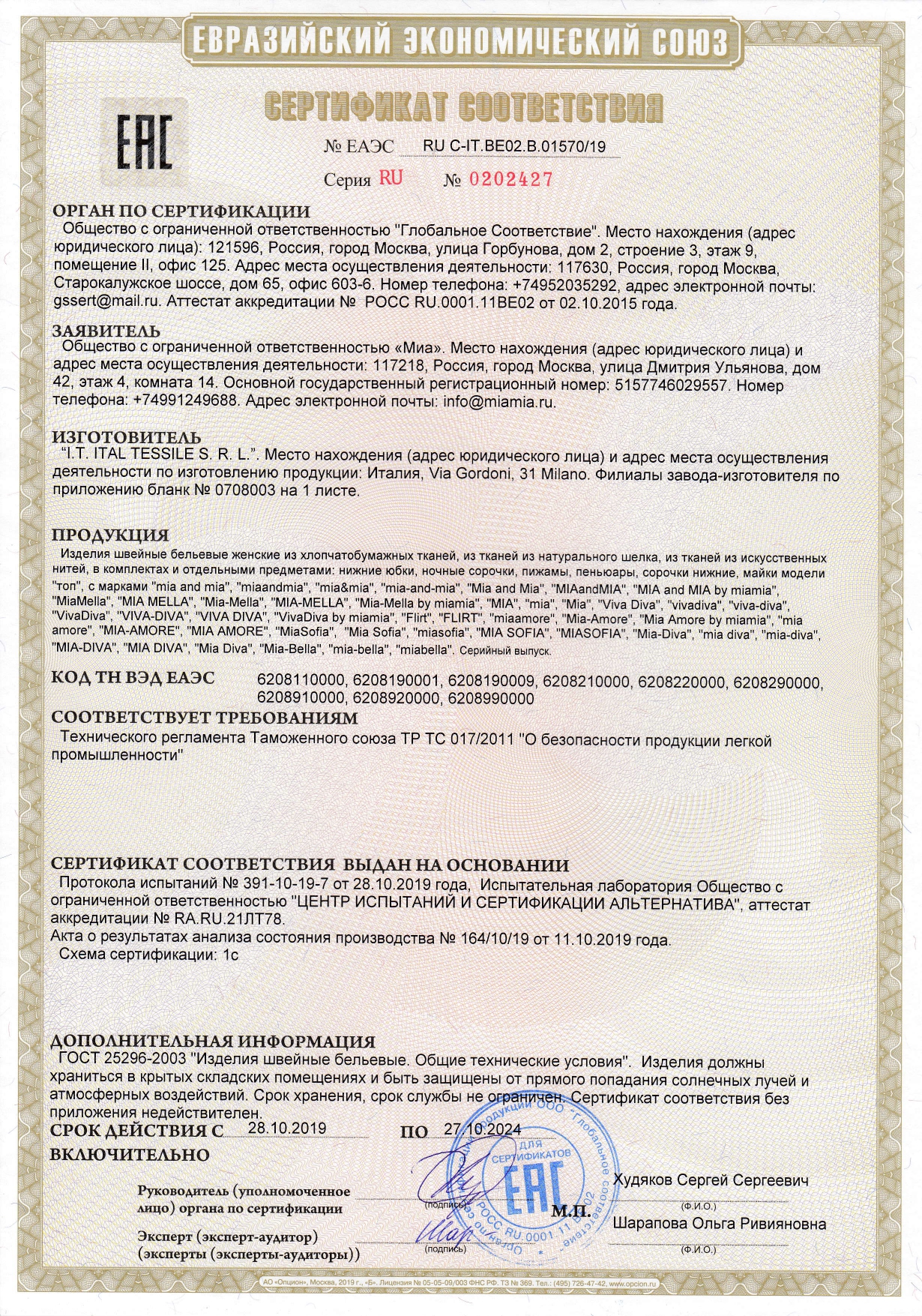 ТР ТС 017/2011 "О безопасности продукции легкой промышленности"