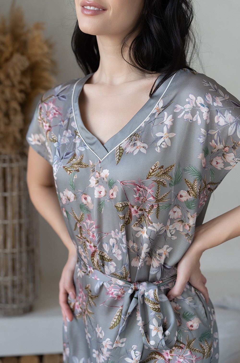Короткая туника свободного силуэта Mia-Amore со спущенным плечем выполнена из принтованного шёлка. По горловине туники акцент в виде тонкого контрастного канта. По бокам разрезы и карманы. Модель дополнена поясом чтобы подчеркнуть линию талии. Туника из натурального шелка подарит приятные тактильные ощущения и комфорт в носке: прохладная на ощупь, легкая и невесомая ткань практически не чувствуется на теле. Шелк не вызывает аллергической реакции и раздражения на нежной, чувствительной коже, а также благотворно воздействует на нее благодаря особым протеинам, входящим в состав волокон. Шелковое полотно отлично пропускает воздух, позволяя коже дышать и хорошо впитывает влагу.
