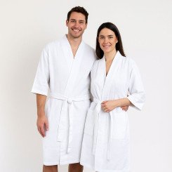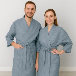 Идеальный халат для дома, бани или спа! Наши универсальные вафельные халаты – это воплощение комфорта, стиля и практичности! Созданные из премиального полотна Бохо, они станут вашим любимым предметом гардероба в любое время года. Идеально подходят как мужчинам, так и женщинам. Отличный выбор для парных халатов!