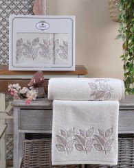 Комплект махровых полотенец 2 шт. "DO&CO" Violet кремовый 50*90 см, 70*140 см