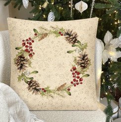 Декоративная наволочка "Гобелен" Еловый венок уголок 45*45 (±2) см