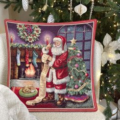 Декоративная наволочка "Гобелен" Санта и свиток желаний золото 45*45 (±2) см