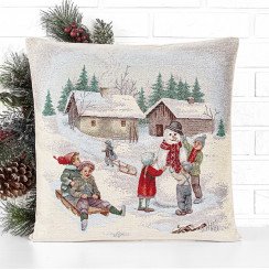 Декоративная наволочка "Гобелен" Рождество в Альпах Снеговик 45*45 (±2) см